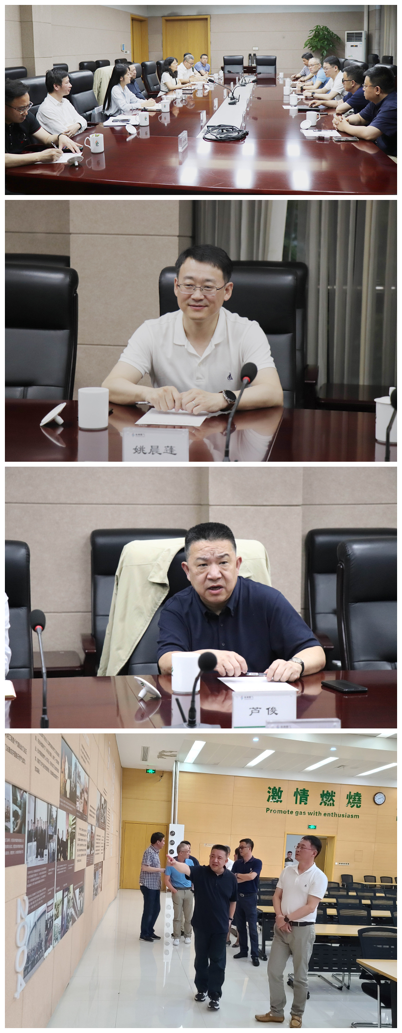 2021年5月26日,杭州錢(qián)江燃?xì)庥邢薰炯昂贾荽蠼瓥|能源有限公司股東方領(lǐng)導(dǎo)班子——杭州錢(qián)塘新區(qū)產(chǎn)業(yè)發(fā)展集團(tuán)有限公司黨委書(shū)記、董事長(zhǎng)、總經(jīng)理姚晨蓬,黨委副書(shū)記、紀(jì)委書(shū)記、監(jiān)事會(huì)主席秦廣怡,黨委委員、董事、副總經(jīng)理盛開(kāi),黨委委員、董事張劍等一行來(lái)訪交流。杭燃集團(tuán)領(lǐng)導(dǎo)蘆俊、朱琴君、王靖、俞峻、徐小冬,及辦公室、錢(qián)江公司、大江東能源公司負(fù)責(zé)人參加。
